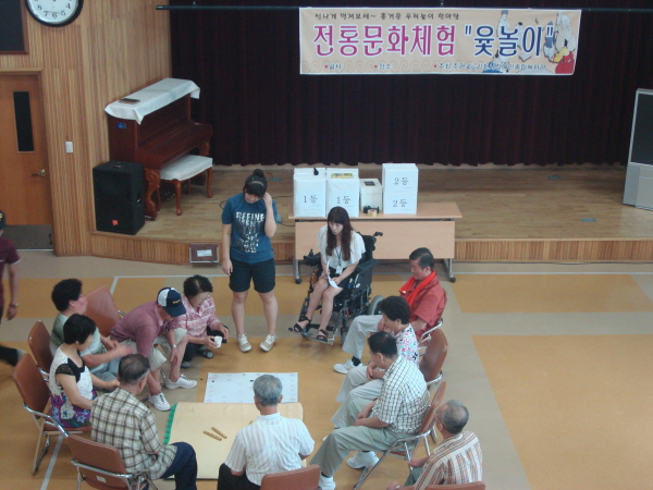 김천시장애인종합복지관(관장 박선하)은 8월 24일(화) 이용 고객 및 자원봉사자 등 37명이 참여하여 전통문화체험 ‘윷놀이’를 실시하였다.