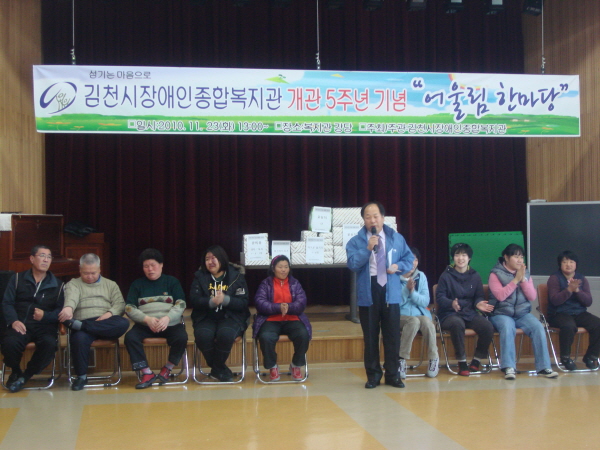 김천시장애인종합복지관(관장 박선하)은 11월 23일(화) 개관 5주년을 맞아 복지관 3층 강당에서 이용 장애인 및 직원 100여명이 참석한 가운데 어울림한마당 행사를 가졌다.