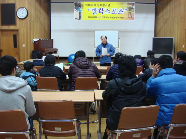 김천시장애인종합복지관(관장 박선하)에서는 1월 7일(금) 16시부터 복지관 강당에서 장애청소년 10명, 학부모 5명이 참석한 가운데 장애청소년 방학스포츠를 개강 하였다.