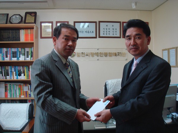 2009-04-22 (주)대구은행 김천지점(지사장 정호강) 김천시장애인종합복지관에 따뜻한 사랑을 전달