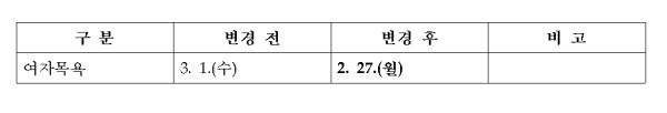 3. 1 (수) 삼일절로 인하여 다음과 같이 목욕서비스 날짜를 변경하고자 합니다.