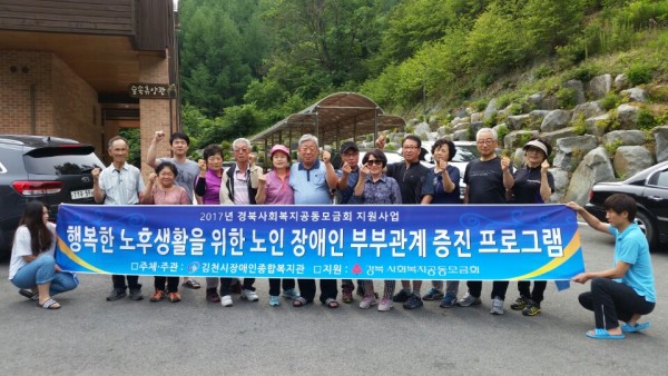 김천시장애인종합복지관(관장 박선하)에서는 노후생활을 위한 노인 장애인 부부관계 증진 프로그램으로 23일~24일 양일간 수도산자연휴양림(김천시 대덕면 소재)에서 ‘한마음 부부캠프의 날’ 프로그램을 진행하였다. 이사업은 2017년 경북사회복지공동모금회 지원사업인 ‘매주 셋째주는 할매·할배의 날’ 사업의 일환으로 총 8쌍의 노인 남성 장애인과 배우자가 참여한 가운데 진행되고 있다.