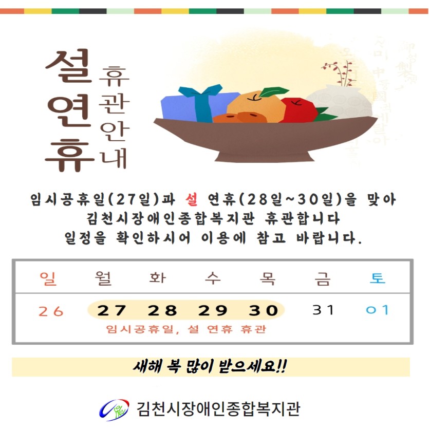27일은 임시공휴일이며, 31일은 정상운영합니다.
