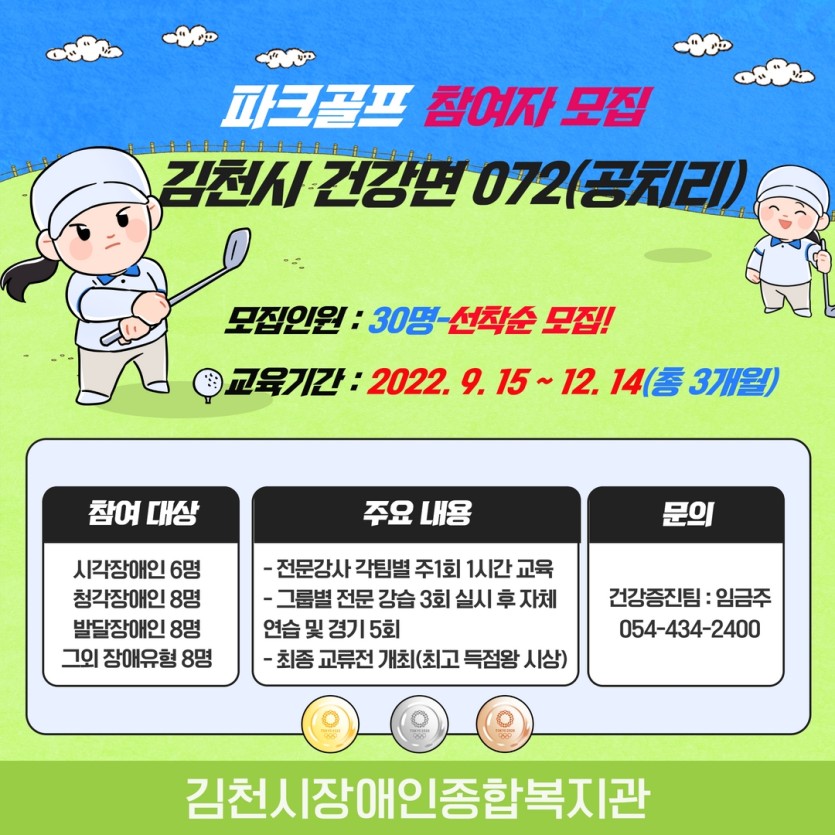 [게시판]파크골프 모집 안내 게시글 작성정보 작성자 김천시장애인복지관 작성일 22-09-14 11:27 조회수 1,415 댓글수 0 목록 게시글 본문 첨부파일 1개 제목을 입력하세요 65.jpg (704.3K) 1회 다운로드 첨부일시 : 2022-09-14 11:27:28 이전글 [게시판]이미용서비스 안내 22-09-20 다음글 [게시판]복지관 서비스 이용 안내 22-09-02 댓글 0 등록된 댓글이 없습니다. 목록