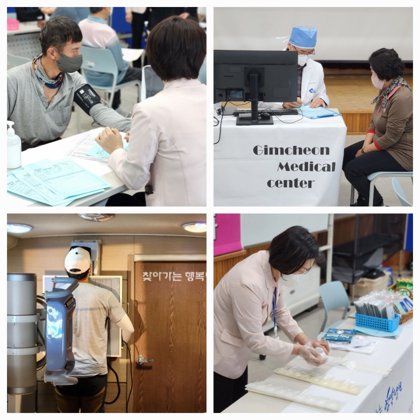 ‘찾아가는 행복병원’ 사업은 의료취약 지역에 살고 있는 독거노인 및 취약의료계층에게 건강증진을 도모하는 사회공헌사업으로 김천시장애인종합복지관에서 기초검진, 골밀도 검사, 혈액검사, 방사선 촬영, 초음파검사 등 체계적인 진료로 구성되어 있다.