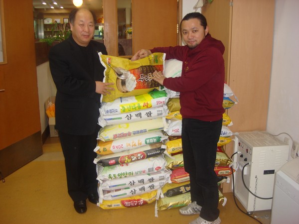 2010-02-12 웨딩사진촌(대표 손영복) 개업 축하화환 대신 받은 쌀, 복지관에 전달