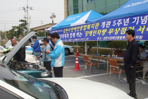 김천시장애인종합복지관(관장 박선하)은 개관 5주년을 기념하여 4월 19일(월) 장애인 차량무상점검을 실시하였다.