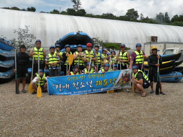 김천시장애인종합복지관(관장 박선하)은 7월 29일(목) 계절스포츠의 일환으로 ‘장애청소년 래프팅’을 실시하였다.