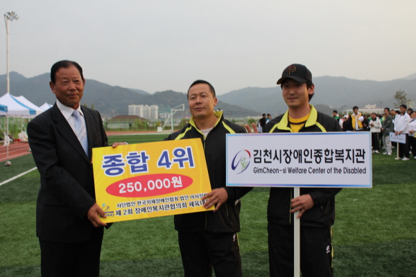 10월 23일(토) 김천대학교 인조잔디구장에서 열린 법인 이사장배 제2회 장애인복지관협의회 체육대회에서 김천시장애인종합복지관이 종합성적 4위를 차지하였습니다.