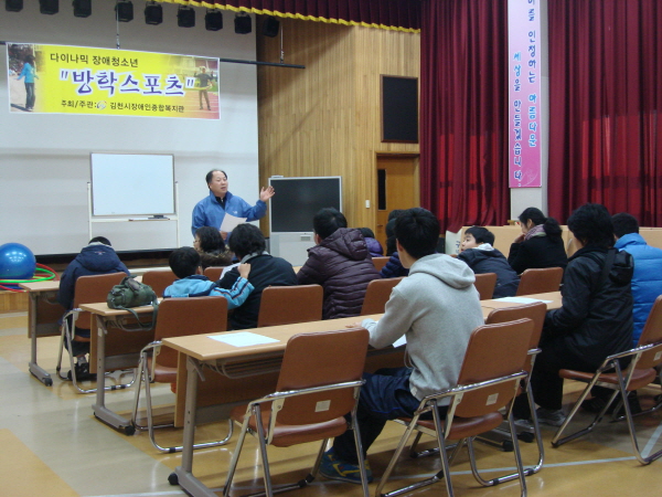 김천시장애인종합복지관(관장 박선하)에서는 1월 7일(금) 16시부터 복지관 강당에서 장애청소년 10명, 학부모 5명이 참석한 가운데 장애청소년 방학스포츠를 개강 하였다.