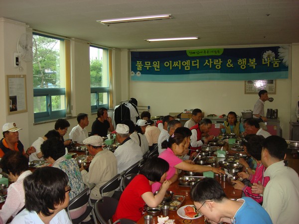 6월 25일(수) 11시30분부터 13시까지 본관 식당(1층)에서는 (주)풀무원이씨엠디(대표이사 한윤우)의 지원으로 무료급식행사인 ‘사랑 & 행복나눔’을 실시하였습니다.