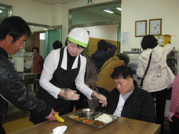 11월 26일(수) 11시30분부터 14시까지 본관 식당(1층)에서는 (주)풀무원이씨엠디(대표이사 한윤우)의 지원으로 무료급식행사인 ‘사랑 & 행복나눔’을 실시하였다